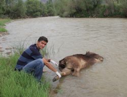 Oltu çayında ölü boğa paniği