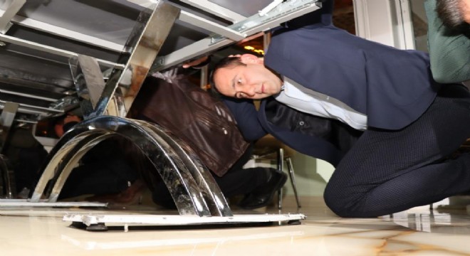 Cumartesi günü Ülke genelinde saat 18.57 itibariylegerçekleştirilen "çök-kapan-tutun" tatbikatı Oltu'da da uygulandı