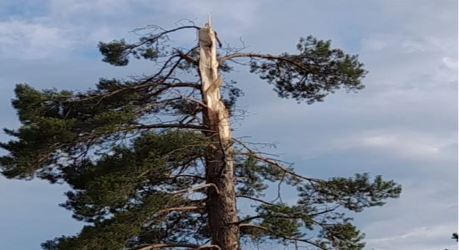 Oltu’nun Güllüce Mahallesi’nde sağanak yağmurda çam ağacına düşen yıldırım çam ağacını ikiye böldü. Oltu’nun Güllüce mahallesinde çobanlık yapan Ferdi Kurt (35) hayvanlarını Güllüce Mahallesi Carmek Yaylası’nda otlatırken, 50 metre yakınındaki çam ağacına düşen yıldırım çam ağacını ikiye böldüğüne şahit oldu. Ferdi Kurt şimşek sesinden çok korktuğunu, kuzularının da korkup ormana dağıldığını belirterek,“Yıldırım düşmesi ve şimşek gürültüsü nedeniyle dağılan sürü toplamak için çok uğraştım. Artık orman içerisine girmekte korkuyorum ve daha önce böyle bir şey yaşamadım” dedi.