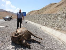 Oltu ilçesinde yol kenarında bulunan büyükbaş hayvan leşleri, sürücüleri zor durumda bıraktı.