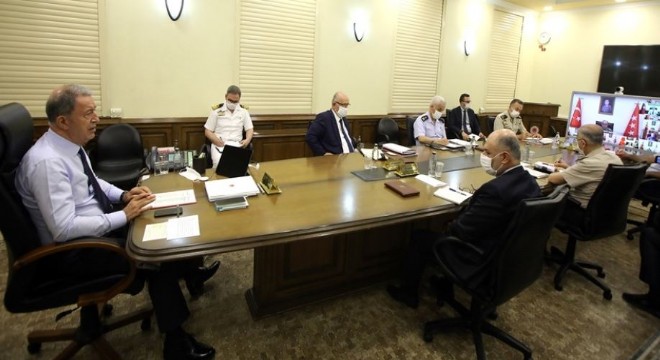 Milli Savunma Bakanı Hulusi Akar başkanlığında Genelkurmay Başkanı Orgeneral Yaşar Güler, Kara Kuvvetleri Komutanı Orgeneral Ümit Dündar, Hava Kuvvetleri Komutanı Orgeneral Hasan Küçükakyüz ve Deniz Kuvvetleri Komutanı Oramiral Adnan Özbal ile Bakan Yardımcılarının katılımıyla haftalık video konferans toplantısı yapıldı.