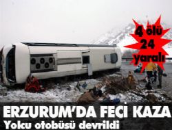 Erzurum'da İranlı turistleri taşıyan yolcu otobüsünün şarampole uçması sonucu 3'ü kadın 4 kişi hayatını kaybederken, 24 kişi de yaralandı.