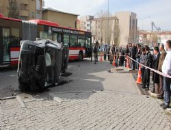 Edinilen bilgiye göre kaza, bugün saat 11.30 sıralarında Palandöken ilçesi Yenişehir semtinde meydana geldi. Esra Değirmenci idaresindeki 25 LN 486 plakalı otomobil seyir halinde iken, Orhan Ersoy yönetimindeki 25 LC 820 plakalı şehir içi yolcu taşımacılığı yapan körüklü otobüse çarparak takla attı. Çarpmanın etkisiyle otobüs içerisindeki yolcular büyük panik yaşarken, takla atan ve hurdaya dönüşen otomobilden sürücü ile yanındaki kadın arkadaşı sağ olarak çıkarıldı.