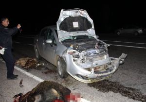 Oltu ilçesi, Dutlu Mahallesi önünde meydana gelen trafik kazasında otomobil koyun sürüsüne çarptı. Kazada 15 koyun telef oldu.