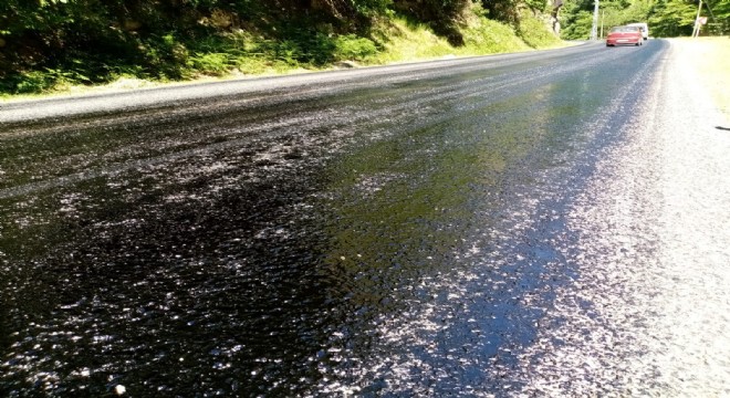 Ovit yolunda asfalt sıcaktan eridi