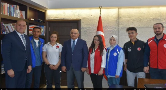 Milli sporcular Sıla Kara, Furkan Akar ile Gönüllü Gençlik Liderleri ve Gönüllü Gençler, Vali Yardımcısı Hamdullah Suphi Özgödek’i ziyaret ederek çiçek sundular. Özgödek, Gençlerin bayramını kutladı.