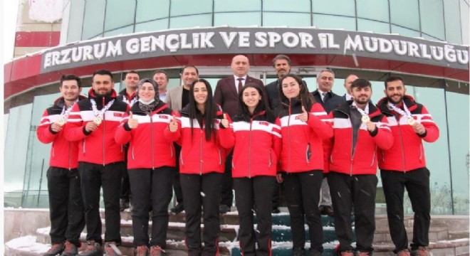Norveç’in Lillehammer Kentinde yapılan Avrupa Curling Şampiyonası’nda tarih yazan Kadın ve Erkek Milli takımımız Erzurum GSİM’deydi. Türkiye Curling Federasyonu Başkanı Prof. Dr. Kenan Şebin, Başkanvekilleri Ahmet Çelebi, Murat Akın, yönetim kurulu üyeleri Güngör Şenses, Levent Çakmur, Erkek Milli Takımı Antrenörü Ahmet Çelik ile Avrupa’da tarih yazan milli curlingçileri kabul eden Gençlik ve Spor İl Müdürü Birdal Öztürk, Avrupa Fatihlerini başarılarından ötürü tebrik ederek dünya şampiyonası ve Olimpiyat Elemeleri öncesinde başarı dileklerini iletti.