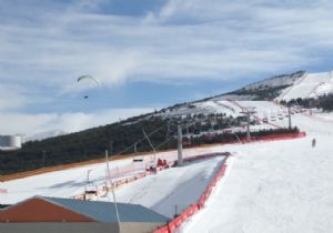 Kayak ve snowboardun yanı sıra bugün bazı turistler yamaç paraşütü yapmanın tadını çıkardı.