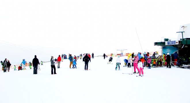 Erzurum Palandöken Kayak Merkezine gelen tatilciler Pazar günü tatilini fırsat bilerek karın ve kayağın tadını çıkardı.