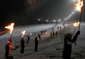 Erzurum Palandöken Kayak Merkezi'nde düzenlenen meşaleli kayak gösterisi, renkli görüntülere sahne oldu. Kayak sezonunun açılmasıyla birlikte kayak severlerin akınına uğrayan Palandöken Kayak Merkezi'nde konuklar için meşaleli kayak gösterisi düzenlendi. Xanadu Otel'de düzenlenen gösteriyi izleyen kayak severler, ateş etrafında dans edip gönüllerince eğlendi.