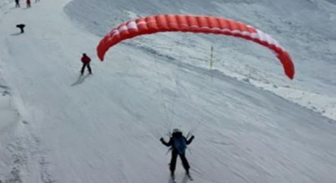 Ülkemizde kış turizminin "parlayan yıldızı" olarak ifade edilen Palandöken Kayak Merkezi, yamaç paraşütü meraklılarına atlayış imkanı sunuyor.