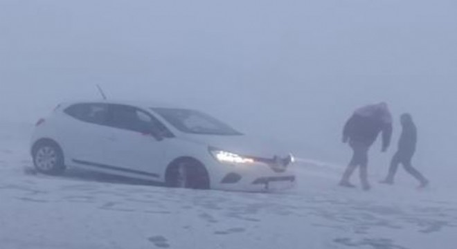 Palandöken geçidinde sis ve tipi nedeniyle onlarca araç mahsur kaldı.