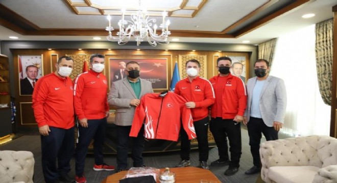 2020 Tokyo Yaz Olimpiyatlarına Palandöken Belediyesi tesislerinde hazırlanan Karate Milli Takımı, Karate Erzurum İl Temsilcisi Ahmet Çelebi ile birlikte Palandöken Belediye Başkanı Muhammet Sunar’ı ziyaret etti.