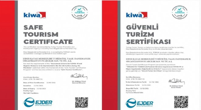 Erzurum Büyükşehir Belediyesi’ne bağlı Ejder 3200 A.Ş. tarafından işletilen Palandöken Kayak Merkezi, bir süre önce Türkiye Turizm Tanıtım ve Geliştirme Ajansı tarafından önerilen ‘Güvenli Turizm Sertifikası’nı almıştı.