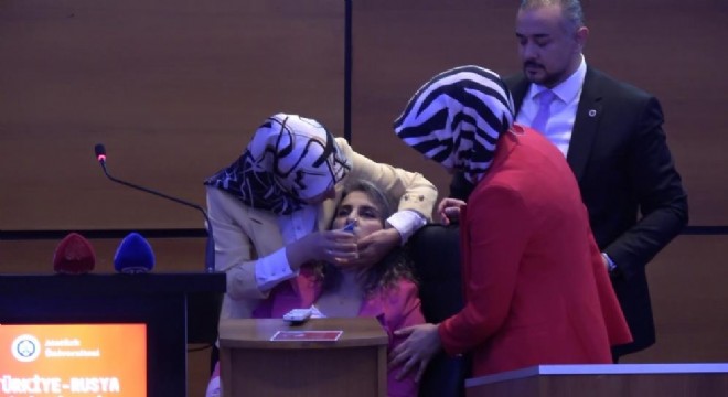 Atatürk Üniversitesi Kültür Merkezi’nde düzenlenen "Türkiye-Rusya İlişkileri Üzerine Uluslararası Akademik Panel"de konuşan Atatürk Üniversitesi Öğretim Üyesi Doç. Dr. Müge Yüce, konuşma sırasında aniden rahatsızlandı. Su içmesine rağmen konuşmasını sürdüremeyen öğretim üyesine katılımcılar müdahale etti.