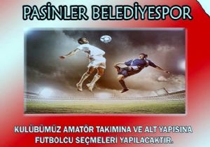 Pasinler Belediyespor alt yapısında yeni yetenekleri keşfetmek için Pasinler ilçe stadyumunda seçmeler yapacak. Pasinler Belediyespor alt yapı koordinatörü Afşin Demir nezaretinde Pasinler Stadyumunda 8-13 yaş aralığında, 10 Ekim 2015 günü saat 10.00’da yetenekli çocuklar için Pasinler Beldiyespor alt yapı çalışmalarına başlıyor. Seçmeler için ilk olarak antrenörler futbolcuları yaş kategorilerine göre ayrılacaklar. Yaş kategorilerine ayrılan futbolcular Pasinler Stadyumunda oynayacakları müsabakalarda kendi hünerlerini antrenörlere göstermek için mücadele edecekler.