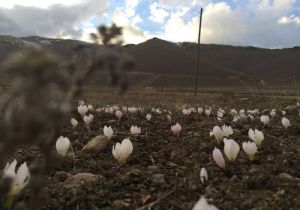 Erzurum'un Pasinler İlçesi'nde kara kışın ardından eriyen karlardan sonra kardelenler çiçek açtı.