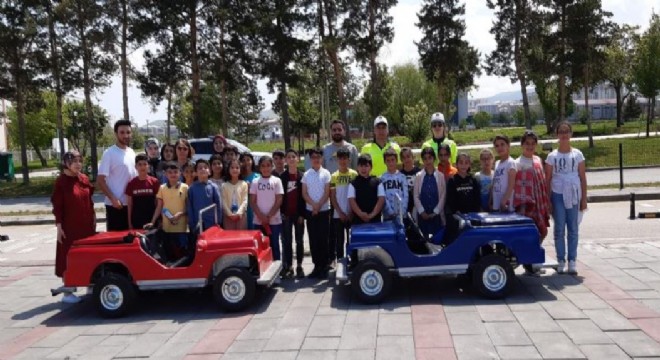 Erzurum’da çocuk trafik eğitim parkında 66 ilkokul öğrencisine ‘Yayalar İçin 5 Adımda Trafik Güvenliği’ çerçevesinde farkındalık eğitimi verildi.