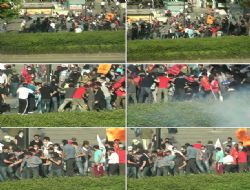 Polis kamerasına yansıyan görüntülerde, Ankara’da ellerinde yasadışı sol bir örgütün flamasını taşıyan marjinal bir grubun, aralarına aldıkları çevik kuvvet polisini yere yıkarak darp ediyor. Dakikalarca sopa ve tekme ile dövülen polis baygın halde hareketsiz kalırken, göstericilerden biri, polisin kalkanını ve kaskını alarak eylemine devam ediyor. O sırada kalabalık, dövülen polisi sürükleyerek yol kenarına bırakıp eylemlerine kaldıkları yerden devam ediyor.