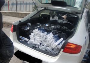Yakutiye İlçesi Kurtuluş Mahallesinde şüphe üzerine takibe alınan ve kovalamaca sonrası apartmanın bahçe duvarına vurmak suretiyle kaza yaparak yakalanan otomobilde yapılan aramada toplam 6 bin paket kaçak sigara ele geçirildi.