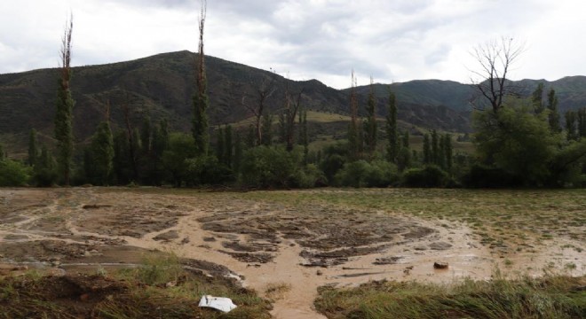 Oltu ilçesinde etkili olan sağanak yağmur ekili alanlara zarar verdi.