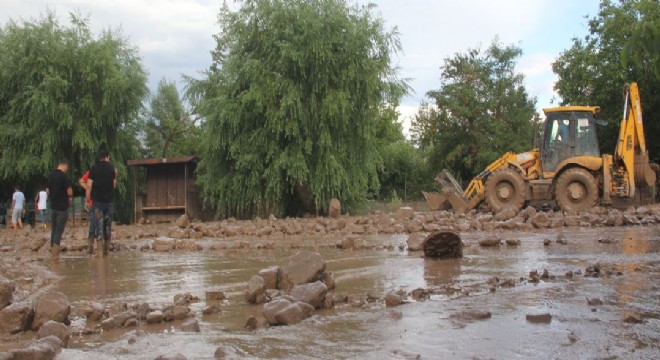 Erzincan'da etkili olan sağanak sonrası derelerden sel geldi.