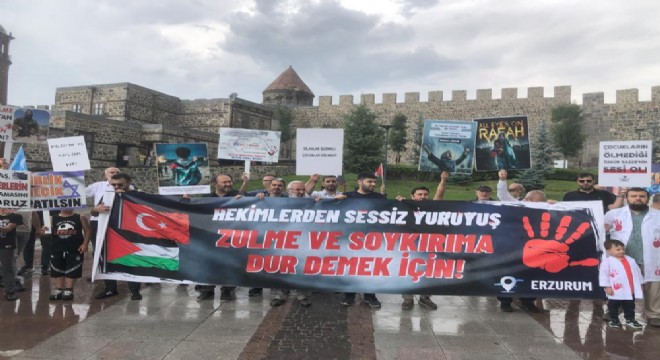 Erzurum'da, İsrail'in Gazze'ye saldırılarını protesto etmek için sağlıkçılar tarafından 38 haftadır kesintisiz olarak düzenlenen sessiz yürüyüş, bu hafta da devam etti.