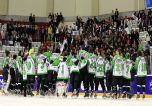 Türkiye Buz Hokeyi Federasyonu (TBHF) Kadınlar Ligi Play-Off final maçını 5-1 kazanarak şampiyonluğunu ilan eden Narman Spor Kulübü'nün sporcuları buz üzerinde halay çekerek, şampiyonluklarını kutladı.