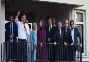 "Bakın şurada bu balkonda, Türk de var, Kürt de var, Arap da var. 'Ehlen ve sehlen' diyen de var. 'Roj baş' diyen de var. 'Hayırlı günler' diyen de var" ifadesini kullanan Davutoğlu, semalardan ezanların yüreklerden kardeşliğin eksik olmamasını diledi.