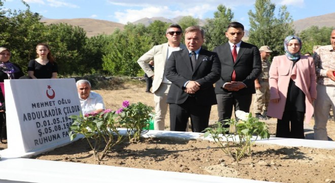 Erzincanlı şehit Abdulkadir Çıldır'ın mezarına, Erzincan Valisi Hamza Aydoğdu'nun katılımıyla bayrak asma merasimi düzenlendi.