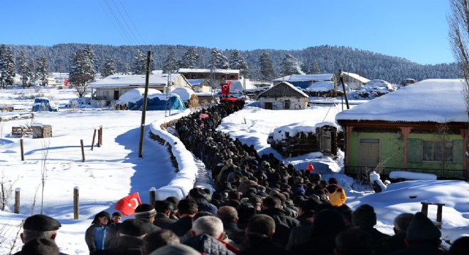 Baba ocağında kılınan cenaze namazının ardından Şehidin Türk Bayrağına sarılı tabutu tekbirlilerle vatandaşların omuzunda köy mezarlığına götürülerek göz yaşları arasında toprağa verildi.