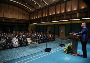 Cumhurbaşkanlığı Külliyesi’nde gerçekleşen kabulde Cumhurbaşkanı Erdoğan, birlik üyesi STK’ları temsilen farklı İslam ülkelerinden Türkiye’ye gelen alim ve kanaat önderlerine hitaben bir konuşma yaptı.