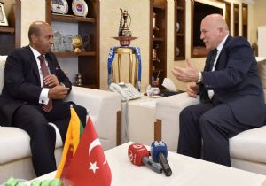 Sri Lanka Demokratik Sosyalist Cumhuriyeti’nin Ankara Büyükelçisi Amza Pakeer Mohideen, Erzurum Büyükşehir Belediye Başkanı Mehmet Sekmen’i ziyaret etti. Bir dizi temas ve incelemede bulunmak üzere kente gelen Büyükelçi Mohideen, Sri Lanka Erzurum Fahri Konsolosu Fatih Yücelik ile birlikte Başkan Sekmen’le görüştü.