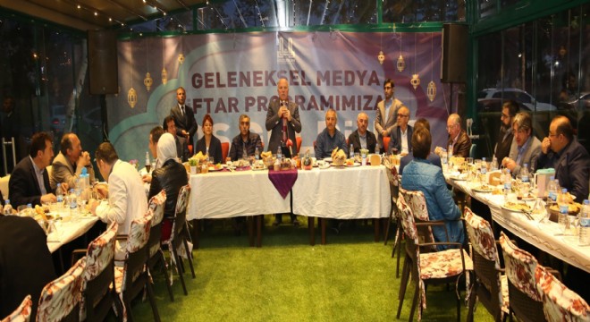 Erzurum Büyükşehir Belediye Başkanı Mehmet Sekmen, kentteki gazetecilerin onuruna verdiği iftar yemeğinde habercilerle bir araya geldi.