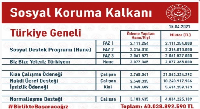 Aile, Çalışma ve Sosyal Hizmetler Bakanı Selçuk, toplam rakamın 60 milyar 38 milyon 892 milyon 590 TL olduğunu açıkladı.