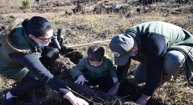 Orman İşletme Müdürü Vekili Korkmaz Dursun, “Bugün burada bin 200 adet sarı çam fidanını toprakla buluşturuyoruz. Bugün fidan yarın nefes olsun çocuklarımıza” dedi.