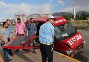 Erzurum’da şehirlerarası bir otobüs firmasına ait servis aracı seyir halindeki 2 otomobile arkadan çarparak kaldırıma çıktı. Kazada 8 kişi yaralandı.