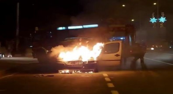 Seyir halindeki araç alev aldı