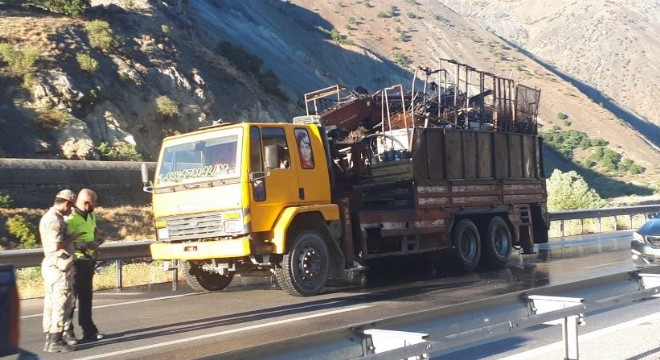 Erzincan’da seyir halindeki kamyonun kasasında bulunan hurda malzemeler yandı. Yangın nedeniyle Erzincan-Erzurum karayolu bir süre ulaşıma kapandı.