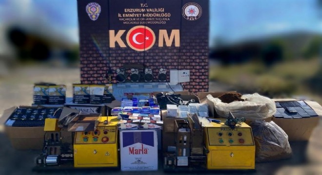 Edinilen bilgiye göre, Kaçakçılık ve Organize Suçlarla Mücadele Şube Müdürlüğü ve Aşkale İlçe Emniyet Müdürlüğünce 5607 sayılı Kaçakçılıkla Mücadele Kanunu kapsamında Aşkale ilçesinde yapılan tütün, makaron ve sigara kaçaklığı operasyonunda; bin 539 paket gümrük kaçağı sigara, 24 bin 900 adet içi tütünle doldurulmuş makaron, 60 bin 800 adet boş makaron, 39 paket tütün, 33 kg kıyılmış tütün, 1 adet kompresör ve 2 adet elektrikli sigara sarma makinesi ele geçirildi.