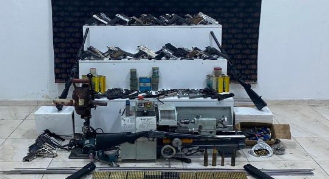 KOM ekiplerince 3 aylık çalışma sonrasında M.G. ve D.Ö. imalathanesi ve ikametgahına düzenlenen operasyonda, adeta cephanelik ortaya çıktı. Operasyonda; 45 tabanca, 3 av tüfeği, 2 pompalı tüfek, 53 şarjör, 3 bin 825 fişek, 7 kutu barut, 45 doldurulmuş kartuş ele geçirilerek muhafaza altına alındı.