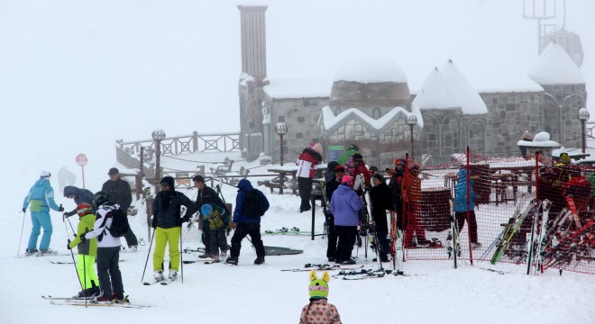 Palandöken Kayak Merkezi'nde gönüllerince eğlendiler