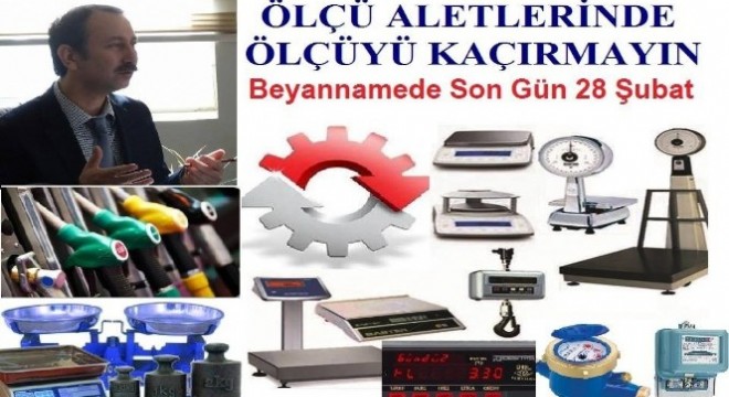 Akaryakıt sayaçları ve ölçekleri, LPG sayaçları, adblue sayaçları, kantarlar, basküller, genellikle kuyumcu ve eczanelerde kullanılmakta olan hassas tartı aletleri, otomatik tartı aletleri, asma teraziler, tek kollu kantarlar, ibreli teraziler, hassas olan ve hassas olmayan kütleler (gram ve kilo) ve kütle setleri, taksimetreler, naklimetreler, takograflar, aks kantarları, otomatik ray kantarları, egsoz gazı emisyon ölçüm cihazları, hububat muayene aletleri, demiryolu yük ve sarnıçlı vagonları, uzunluk ölçüleri (tek parçalı ağaç metreler) maddeler için hacim ölçüleri, kuru taneli maddeler için hacim ölçülerinin periyodik muayene yaptırmaları için son gün 28 Şubat olarak belirlendi.