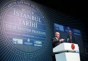 Antik Çağdan 21. Yüzyıla Büyük İstanbul Tarihi eserinin tanıtım toplantısında konuşan Cumhurbaşkanı Erdoğan, “Yaşadığımız olayları, ülkemizdeki, bölgemizdeki gelişmeleri tarihin bize tuttuğu ışık doğrultusunda sürekli yeniden yorumlamak, yeniden değerlendirmek mecburiyetindeyiz. Bizim tarih çalışmalarımızın en önemli eksiğinin işte bu boyut olduğunu düşünüyorum” dedi.