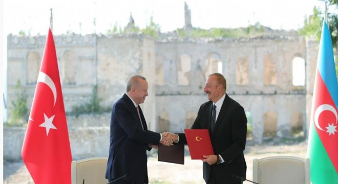 Cumhurbaşkanı Recep Tayyip Erdoğan, Azerbaycan’ın kültür başkenti Şuşa’da Azerbaycan Cumhurbaşkanı İlham Aliyev ile bir araya geldi. Erdoğan ve Aliyev ikili görüşmenin ardından Şuşa Beyannamesi’ni imzaladı. Türkiye ile Cumhuriyeti arasında imzalanan beyannamede, Cumhurbaşkanı Erdoğan’ın ve Aliyev’in Türk dünyasının eski kültür beşiği Şuşa kentinde görüşmesinin tarihi önemine vurgu yapılarak, iki dost ve kardeş ülke arasında imzalanmış tüm uluslararası belgelere, bununla ilgili 13 Ekim 1921 tarihli Kars Antlaşması’na sadık oldukları bir kez daha onaylandı.