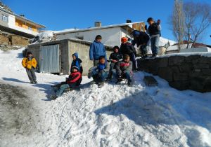 Kızak kaymanın köy çocukları için eğlence kaynağı olduğunu ifade eden çocuklar, “Böylece eğleniyoruz” dediler.
