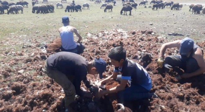 Tekman ilçesinde yaylada bulunan koyun sürülerinde kırkım dönemi başladı.