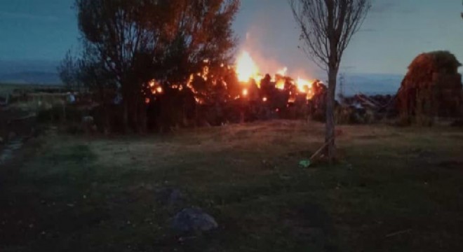Tekman ilçesindeki mezrada çıkan yangın sebebiyle yüzlerce ton ot kül oldu.