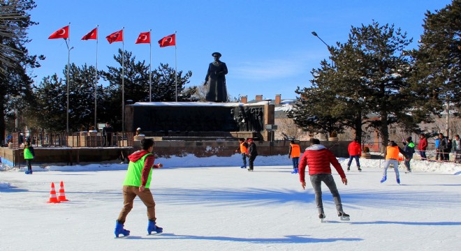 Doğu Anadolu Bölgesi’nde etkili olan soğuk havan nedeniyle Erzurum Kent Meydanı’nda bulunan Atatürk Anıtı önündeki bin 800 metrekarelik süs havuzu buzla kaplandı. Bu durumu fırsat bilen Büyük Okyanus Spor Kulübü, Erzurum Büyükşehir Belediyesinin desteğiyle süs havuzunu buz pistine dönüştürdü. Kulüp Başkanı Eren İlter ile yardımcı antrenörler tarafından süs havuzunda gündüz ve akşam saatlerinde her yaş grubuna buz pateni eğitimi veriliyor.