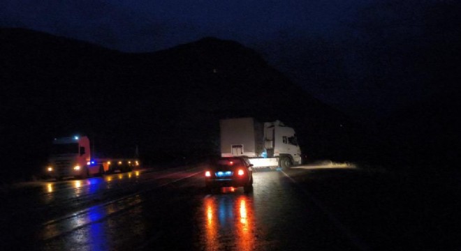 Uzundere ilçesinde, tünel çıkışında İran uyruklu tır sürücüsü direksiyon hakimiyetini kaybederek karşı şeride geçti. Yağmur nedeniyle kayganlaşan yolda tırın çekici kısmı dorsesiyle çarpışarak hasar gördü.